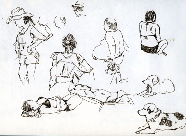 Another beach sketch in Manuel Antonio. There really is nothing else to do on the beach but sketch the people lazing around.