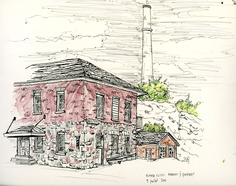 Joel and I had a fruitless search a few weeks ago for a location in Sudbury interesting enough for plein air sketching. We wandered around for over an hour trying to find a somewhat inspiring location and came up with nil. This time, however, we opted to go back to our old sketching stomping ground for Copper Cliff Part Deux.
