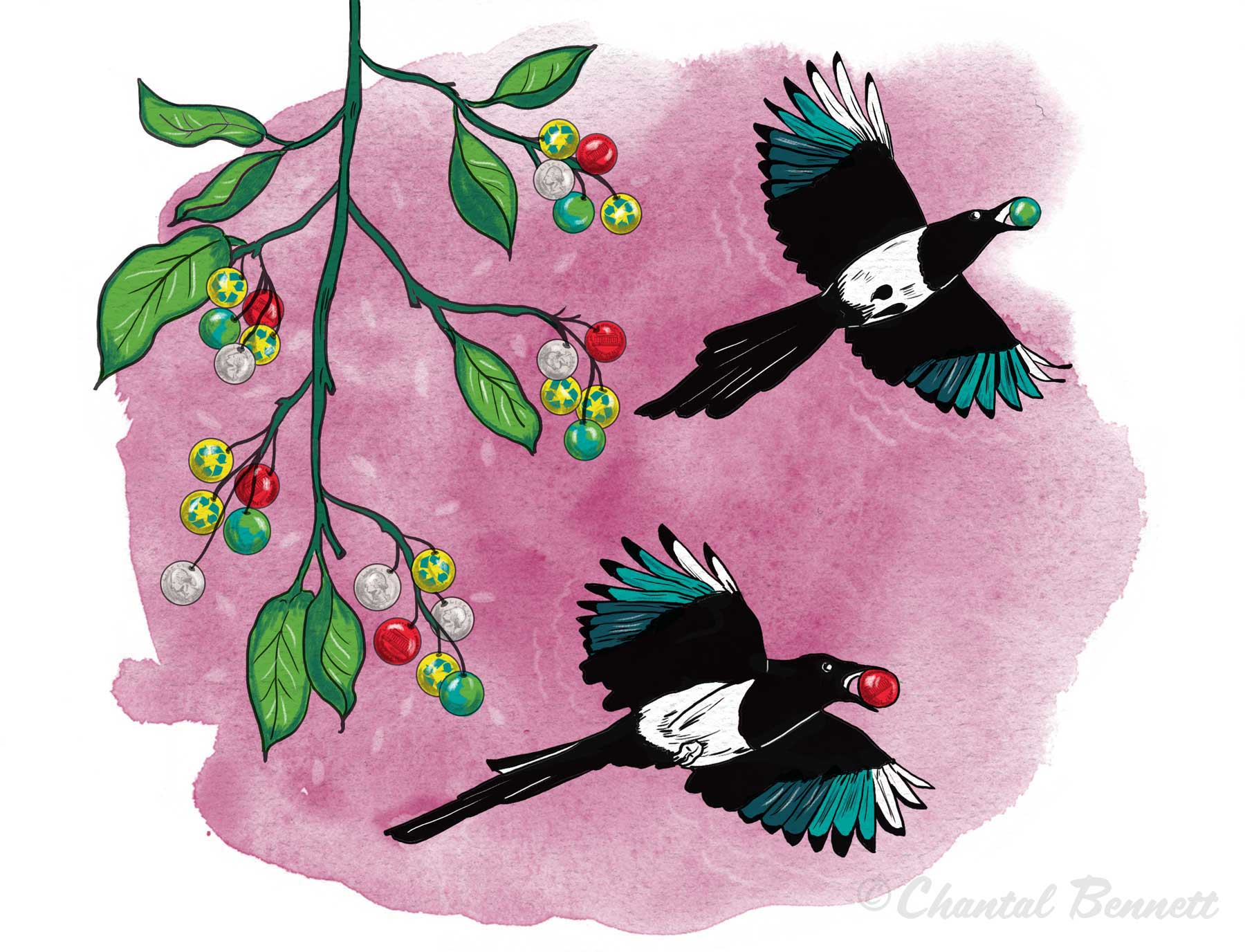 A self-directed illustration about money and carbon credits living in a symbiotic environment.