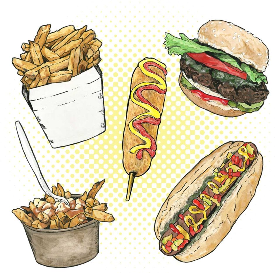 Spot illustrations of foods found at chip stands. Created for my Every Chip Stand project and sold as a magnet.