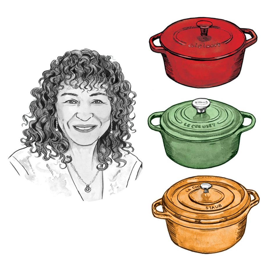 Spot illustrations of Dutch ovens and a portrait of a notable cook for Food & Wine Magazine.