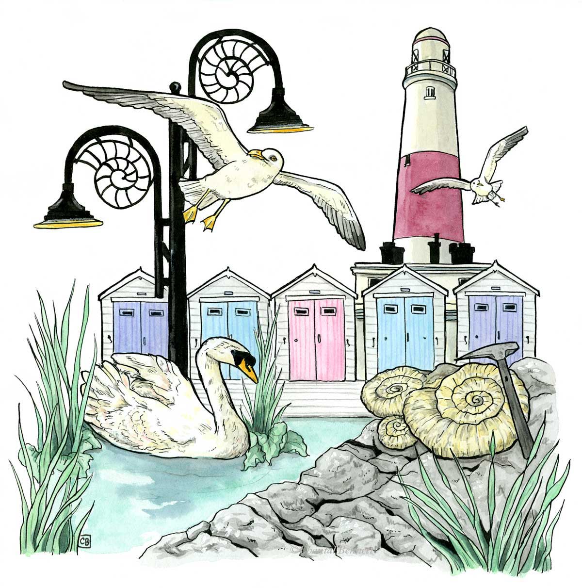 A travel illustration inspired by my travels to Lyme Regis and the Jurassic Coast in England.