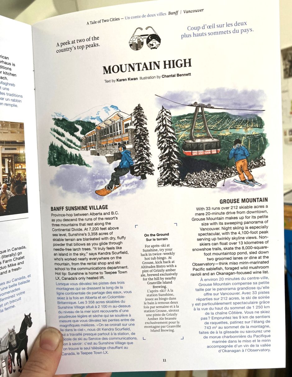 Spot illustrations of ski hills for re:Porter Magazine, the inflight magazine for Porter Airlines