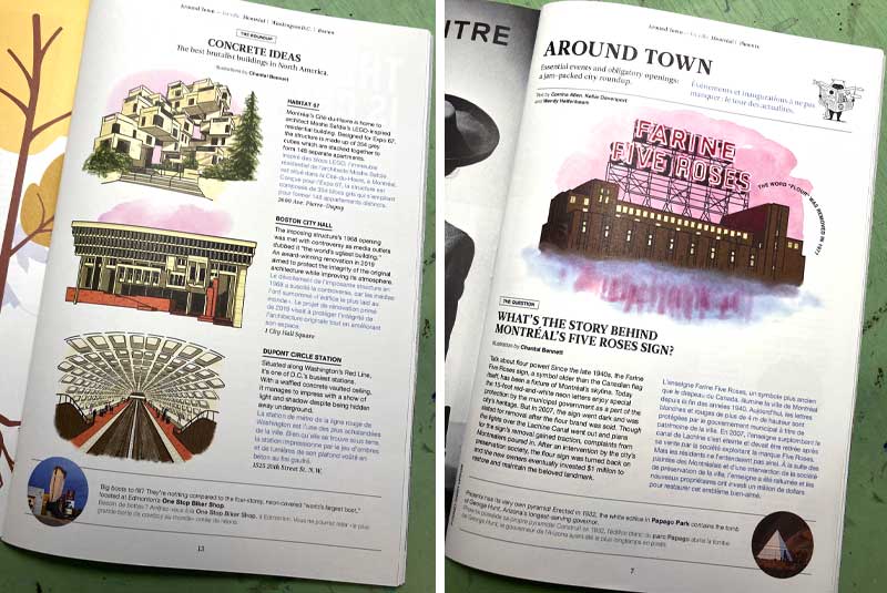 Spot illustrations of Brutalist architecture for re:Porter, Porter Airlines’ inflight magazine.