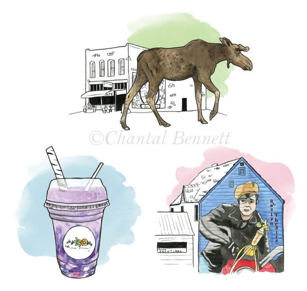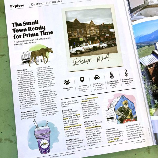 Spot illustrations of Roslyn, WA for Destination Dossier section of Seattle Met magazine.