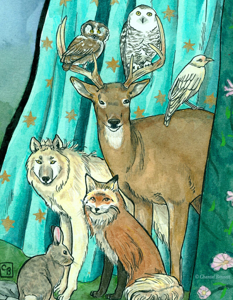It’s been awhile since I’ve painted on a large scale, so for this piece I opted to go bigger to get all the detail in (16×20″). Inked first then painted in watercolour and gouache.