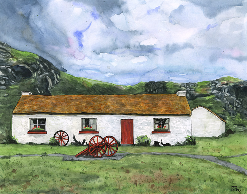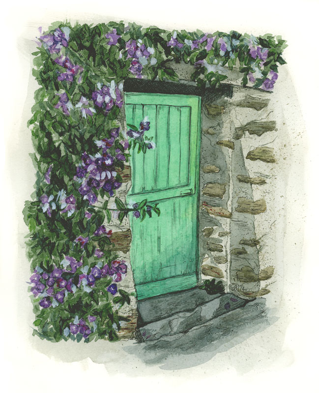 This was sketched on a drizzly day in Lustleigh, in the Dartmoor Park. I like how much the cottage is leaning (not an exaggeration, I measured). I like what the rain did to the sky and pavement part of the sketch. There is a fantastic tea room next door, The Primrose Tea Room, where I had one of the best afternoon teas of my life.